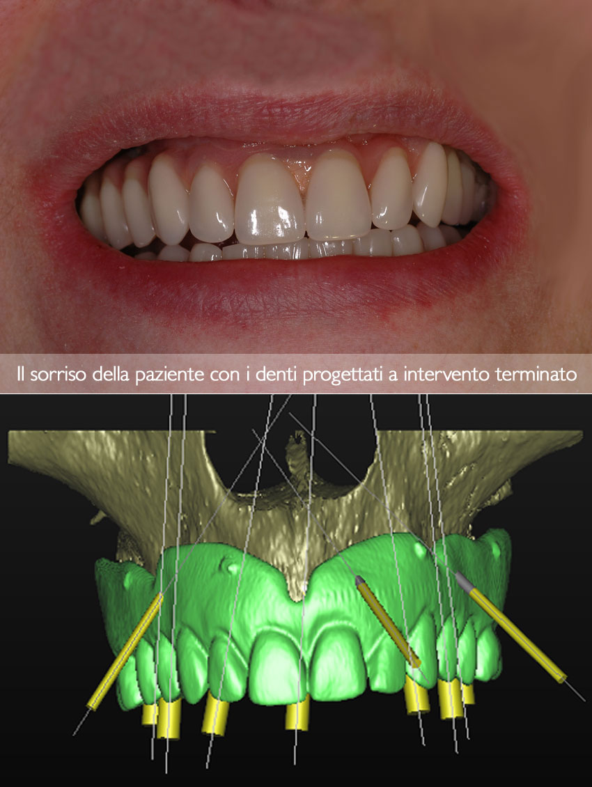 Con l’implantologia computer assistita è inoltre possibile applicare, durante l’intervento, una protesi fissa personalizzata, già realizzata in precedenza su progetto CAD CAM (quick bridge).